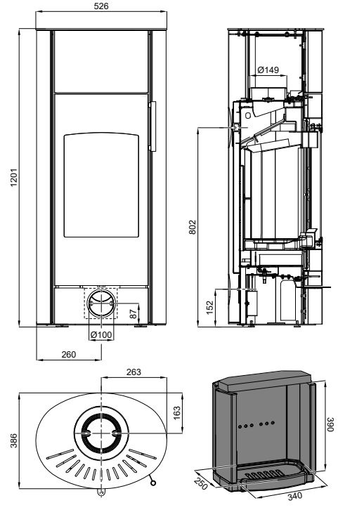 EMBER, vysoké, boční obklad+víko plechové, podstavec, barva černá aspero