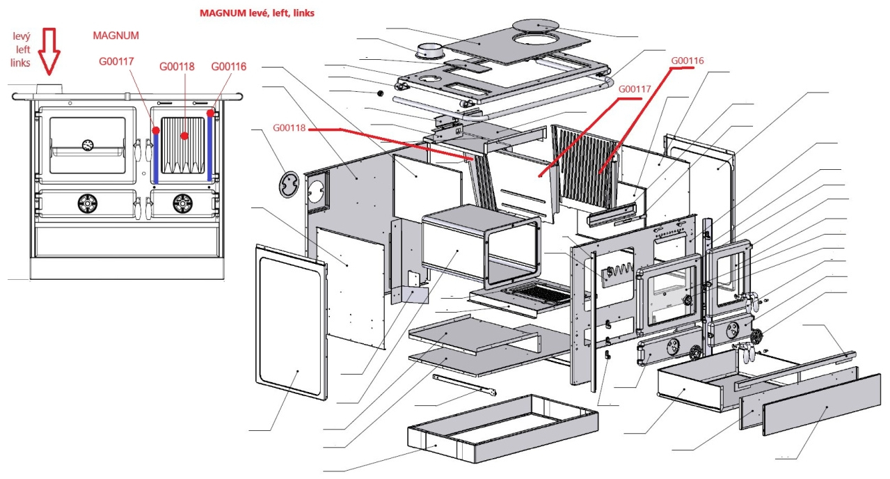 MBS - Ersatzteil aus Gusseisen für den Ofen - Rückenteil - MAGNUM-Version links - G00118