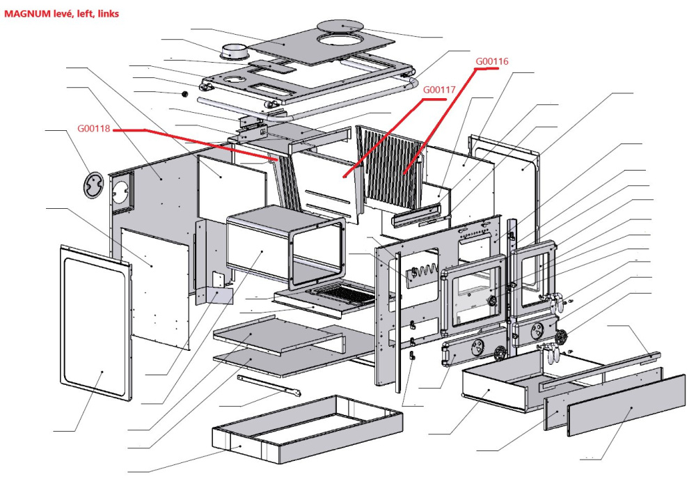 Náhradní díly pro sporák MBS MAGNUM PLUS - LEVÝ