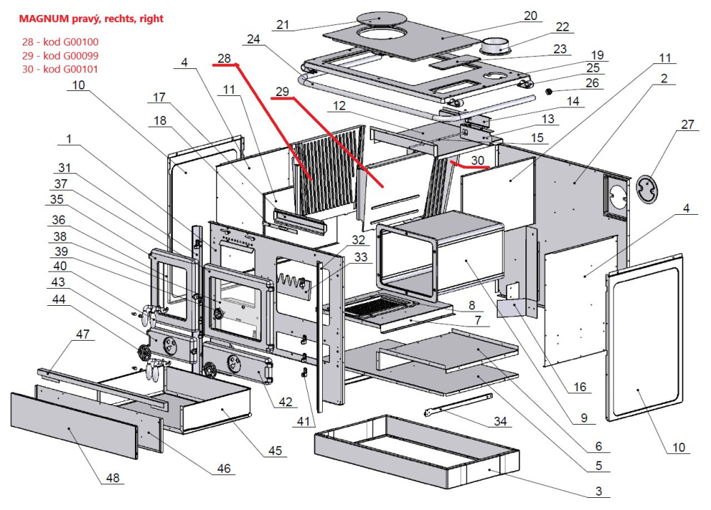 Náhradní díly pro sporák MBS MAGNUM PLUS - PRAVÝ