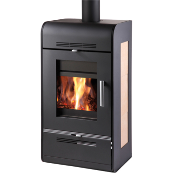 Krbová kamna Andrus s výměníkem jsou k dostání ve dvou barevných variantách. Černý korpus s béžovou dlažbou nebo antracitový korpus decentně doplněný šedou dlažbou.