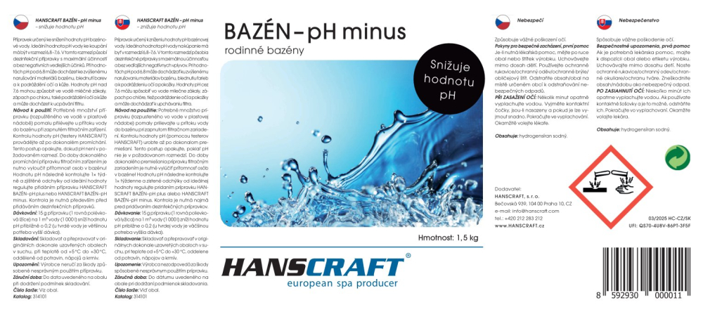 HANSCRAFT BAZÉN - pH minus - 1,5 kg