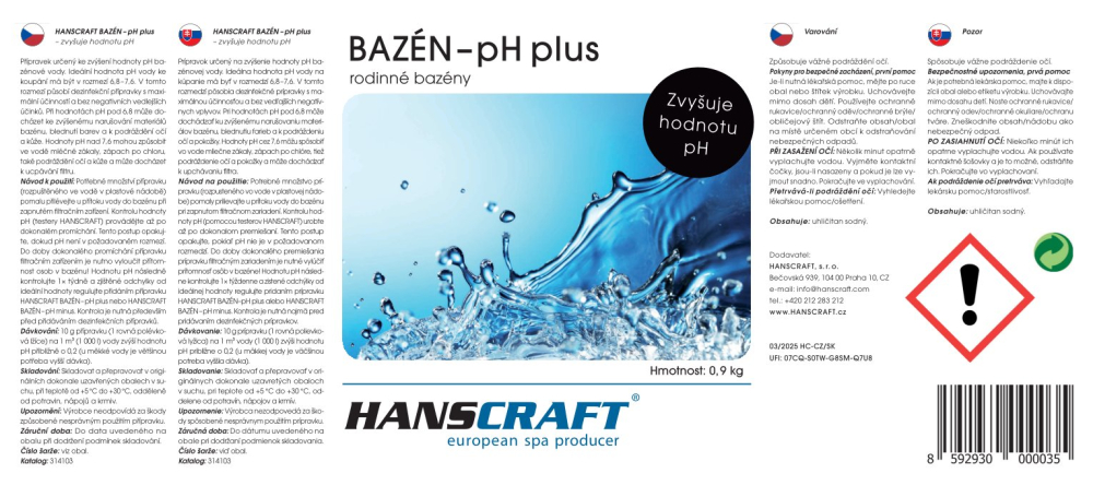 HANSCRAFT BAZÉN - pH plus - 0,9 kg