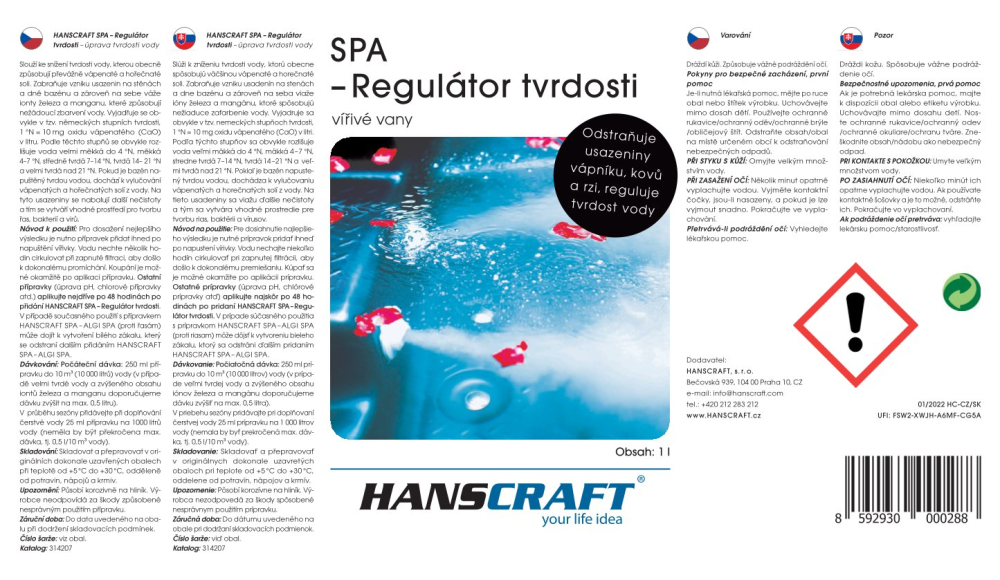 HANSCRAFT SPA - Regulátor tvrdosti - 1 l