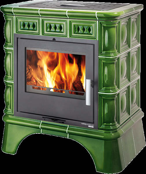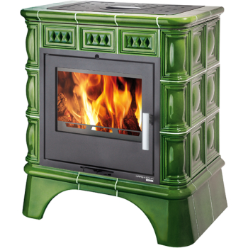 MATERA s výměníkem, černá, kachle zelená