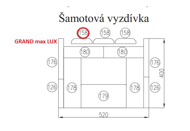 Náhradní díl pro HAAS+SOHN - GRAND MAX LUX s vým.,hnědá- Cihla 158 (šamot) 30x120x370