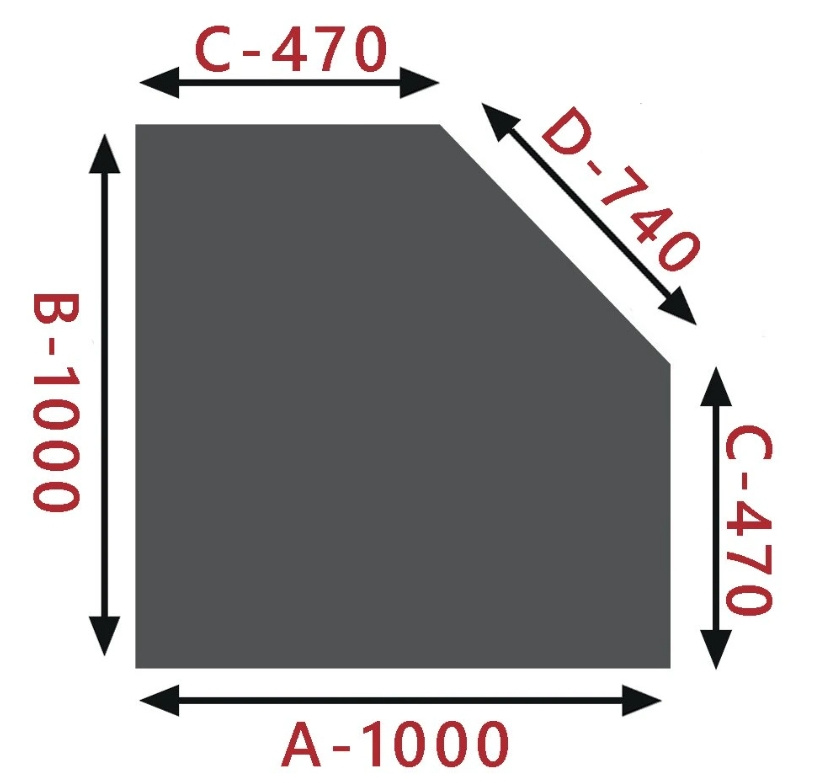 Parametry Sklo pod kamna - Pětihran 1000x1000 mm / 8 mm